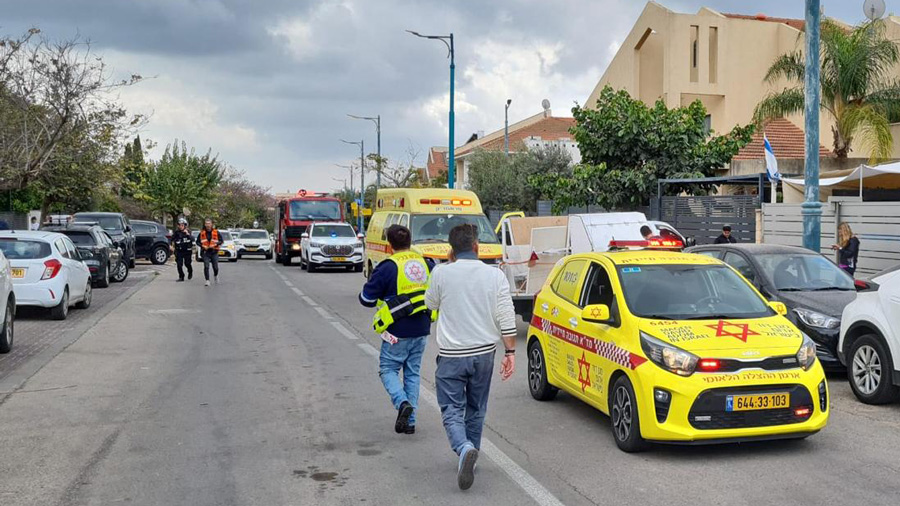 23h02 – À la suite de tirs de missiles vers l’État d’Israël : sur une scène dans la région de Sharon Sud, les secouristes et paramédicaux du MDA signalent un homme d’une trentaine d’années en état critique, blessé par des éclats.