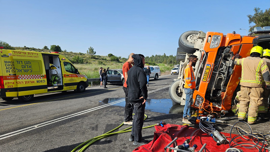 Dans la région de Kiryat Gat, un accident de la route a été signalé pendant une alerte : un piéton, descendu d’un bus à la suite de la sirène, a été percuté par un véhicule. Les équipes du MDA soignent un homme d’environ 50 ans, grièvement blessé, souffrant de traumatismes multiples, intubé et ventilé, avant son évacuation vers l’hôpital Soroka.