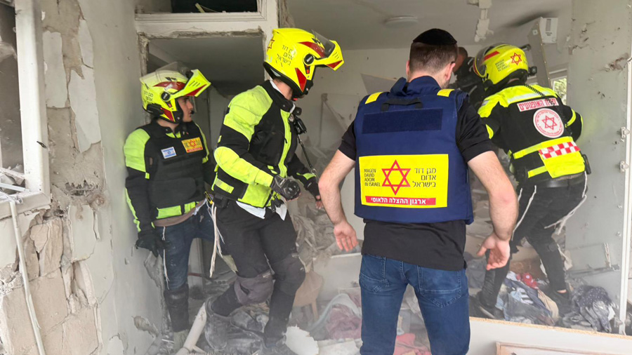 Les équipes de Magen David Adom ont été déployées pour fouiller les lieux des impacts signalés. Les EMT et paramédics de MDA prodiguent des soins à un petit nombre de personnes blessées en se rendant vers les abris, ainsi qu’à celles souffrant d’anxiété.