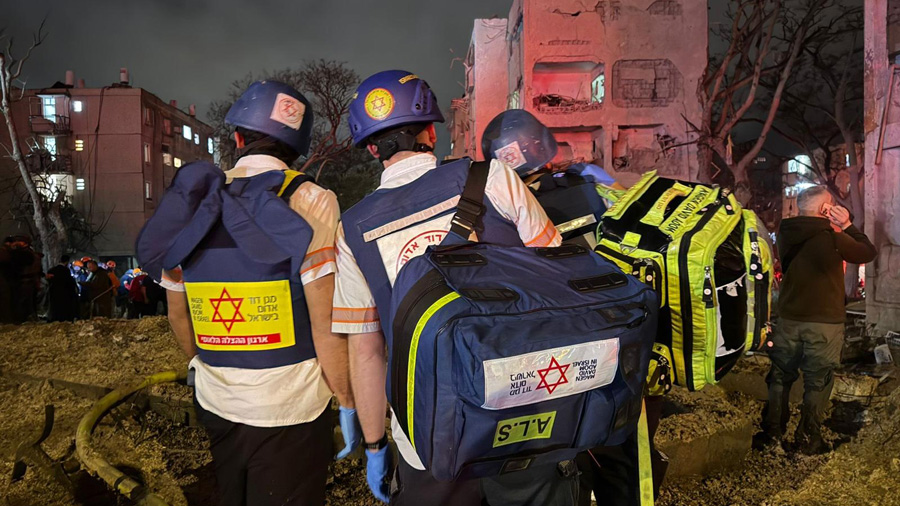 10h57 – À la suite de tirs de missiles vers l’État d’Israël : les équipes du MDA prodiguent des soins et évacuent vers les hôpitaux Beilinson et Ichilov 15 patients, dont un homme de 53 ans dans un état modéré avec des blessures dues à l’onde de souffle, et 14 dans un état léger.